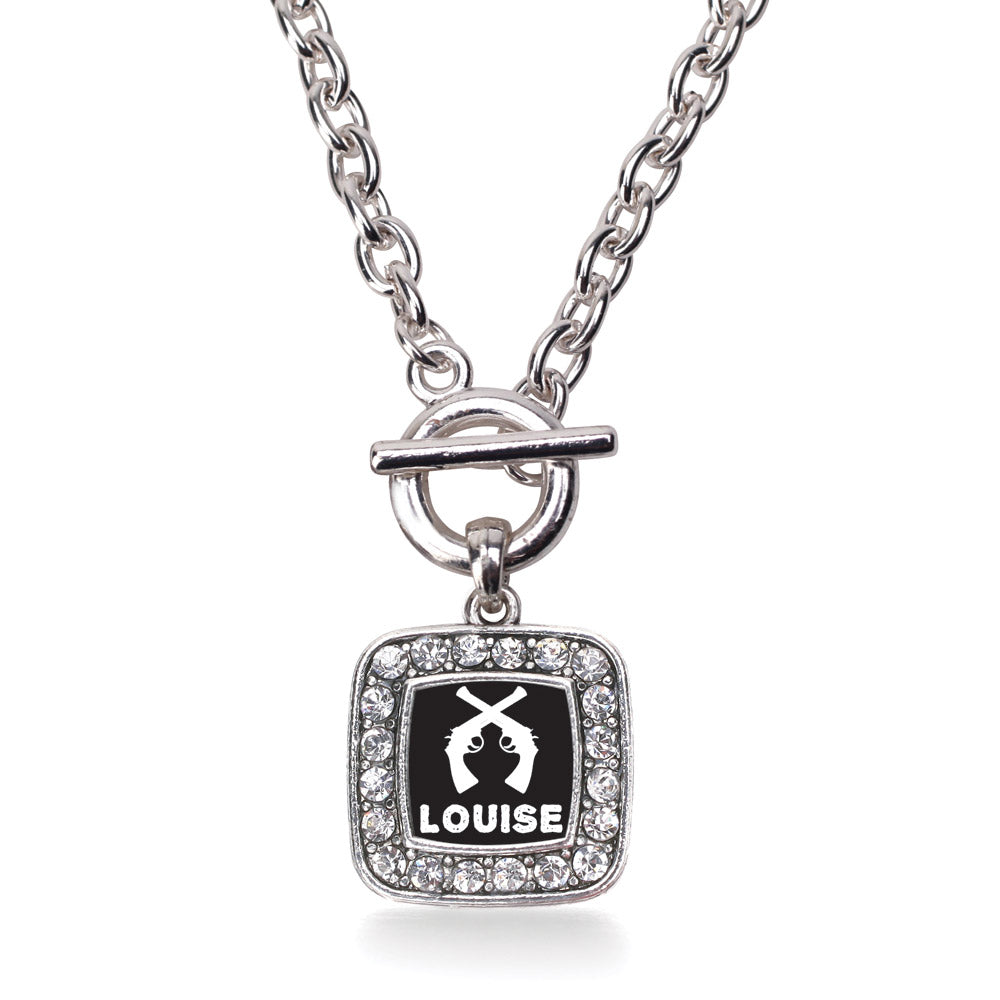 Our sparkling toggle necklace, equipped with a stylish toggle clasp and the Louise square charm, is crafted from white metal with a silver plated finish and accented with cubic zirconia stones.