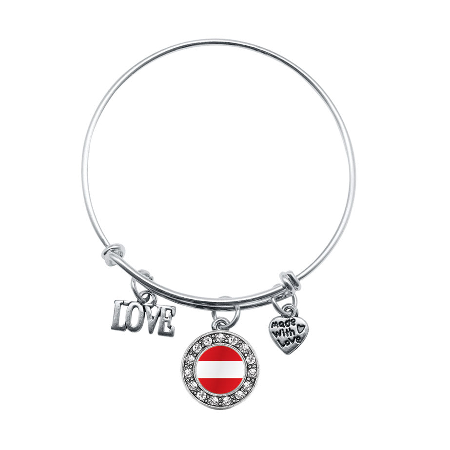 Silver Love Austria Flag Circle Charm Wire Bangle Bracelet