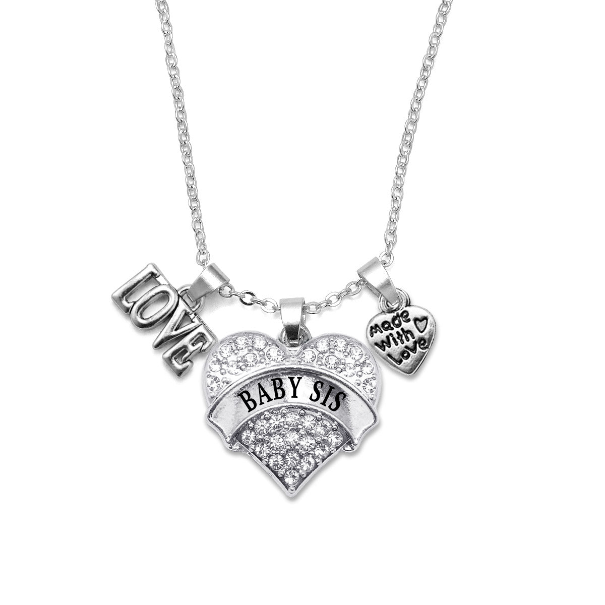 Silver Love Baby Sis Pave Heart Charm Classic Necklace