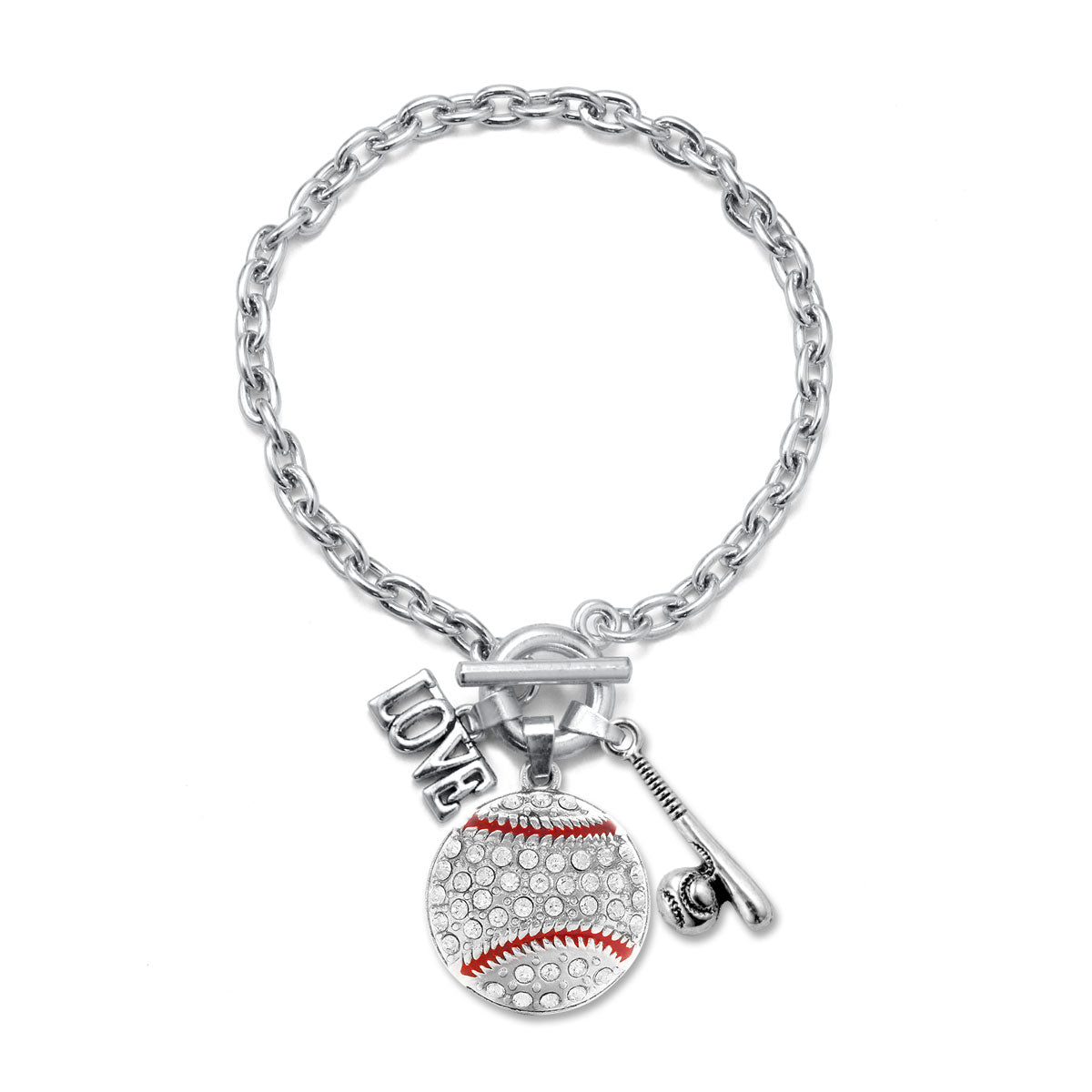 Our sparkling toggle bracelet, equipped with a stylish toggle clasp and the Love Baseball Bat charm, is crafted from white metal with a silver plated finish.