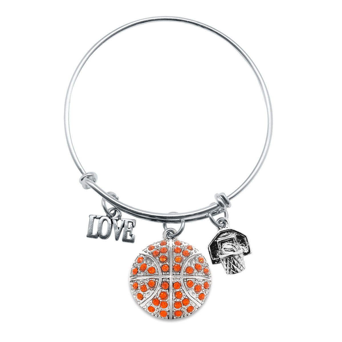 Silver Love Basketball Charm Wire Bangle Bracelet