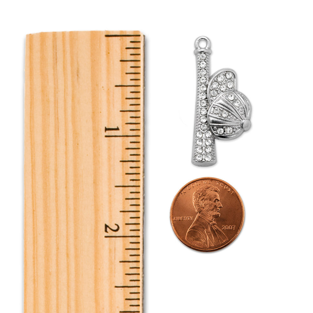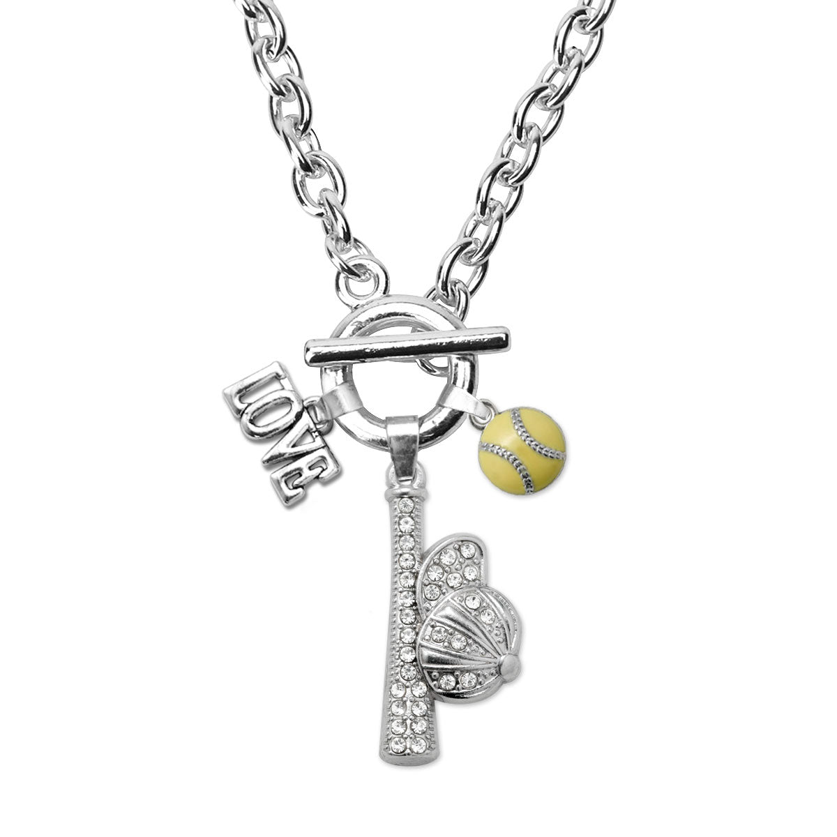 Silver Love Hat and Bat Softball Charm Toggle Necklace