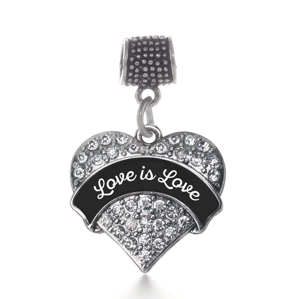 Our sparkling memory charm, equipped with a stylish charm attachment ring and the Love is Love pave heart charm, is crafted from white metal with a silver plated finish and accented with cubic zirconia stones.