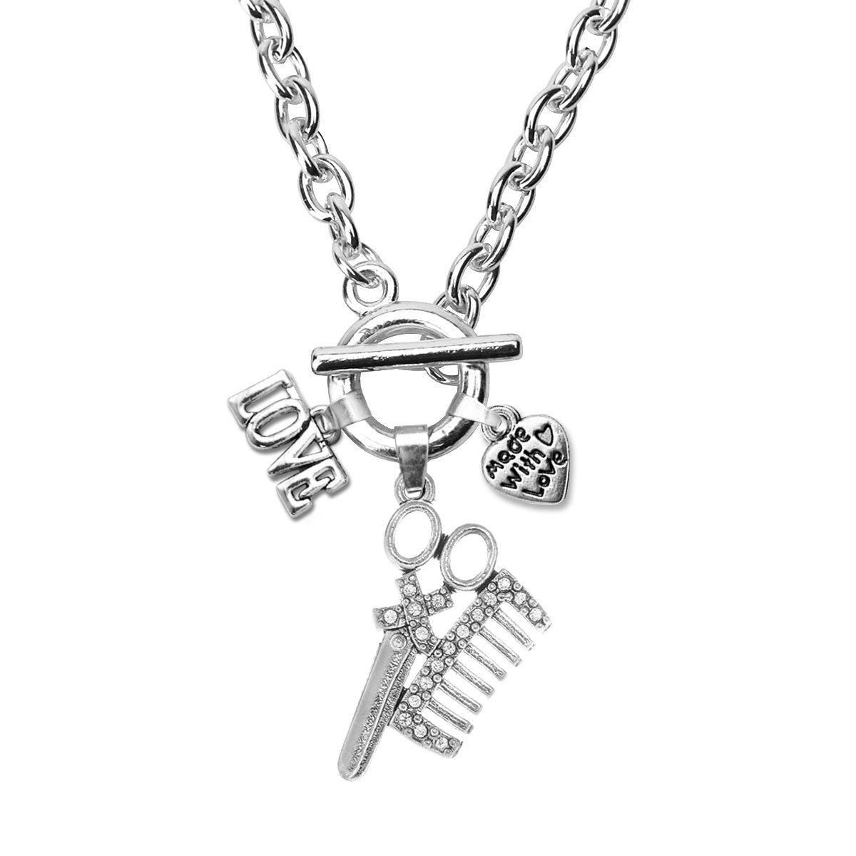 Our sparkling toggle necklace, equipped with a stylish toggle clasp and the Love Pave Stylist charm, is crafted from white metal with a silver plated finish.