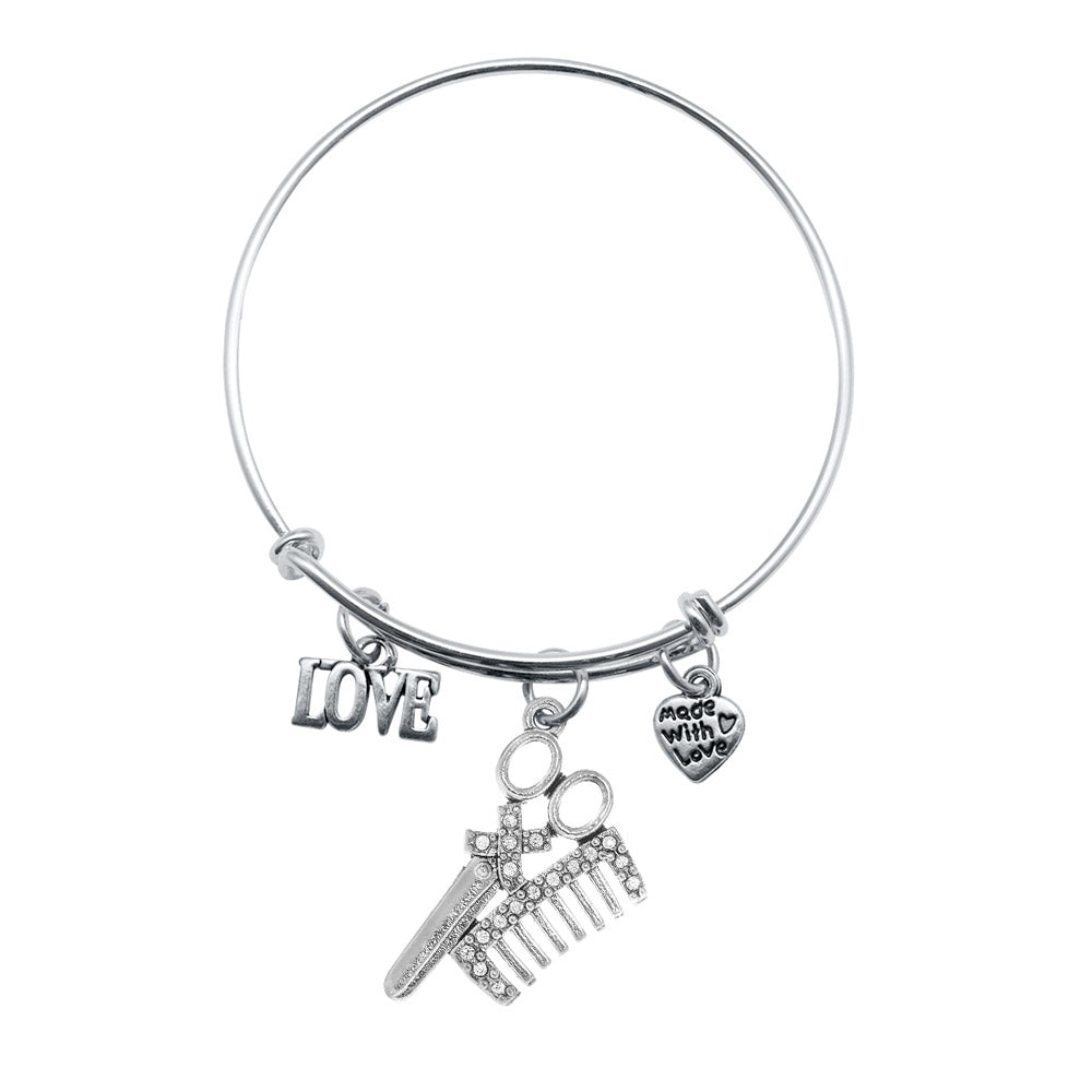 Silver Love Pave Stylist Charm Wire Bangle Bracelet