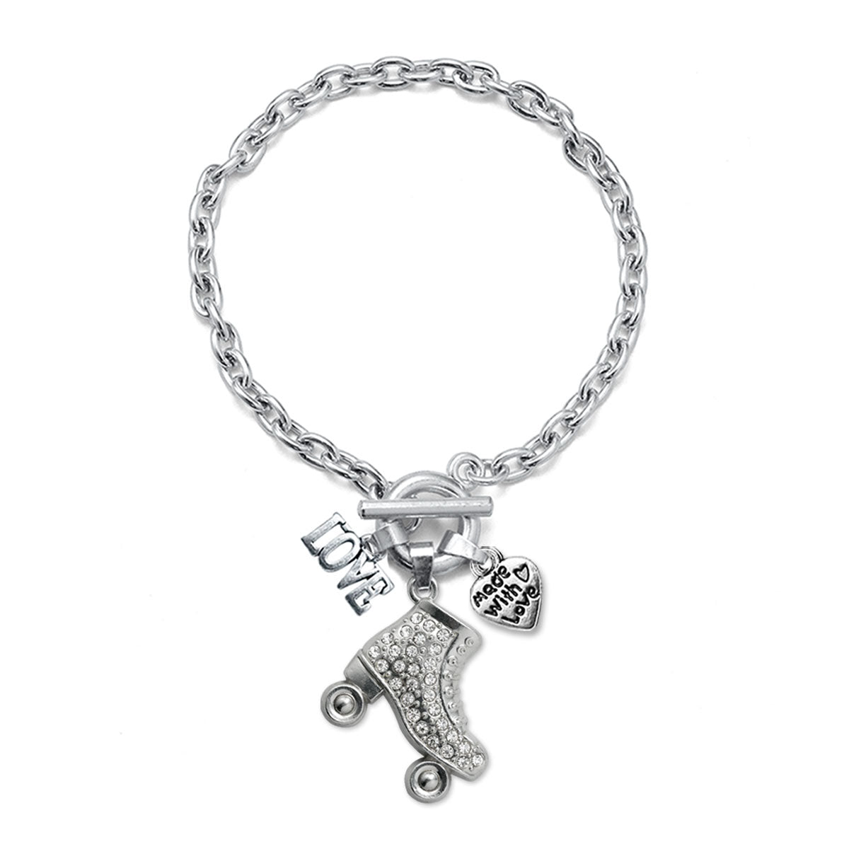 Silver Love Roller Skate Charm Toggle Bracelet