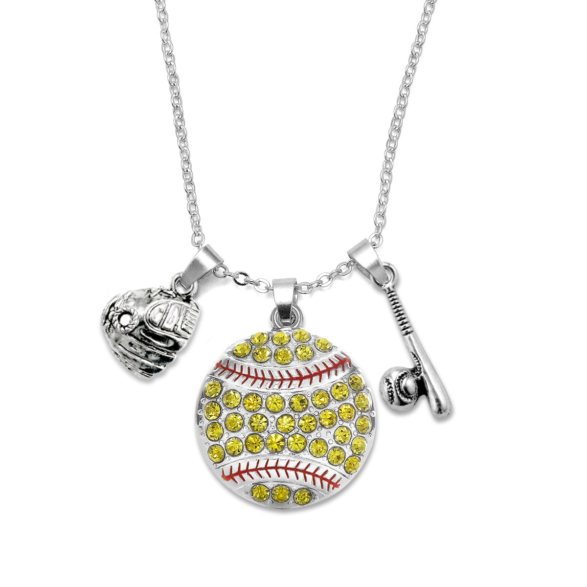 Our sparkling classic necklace, equipped with a stylish lobster claw clasp and the Love Softball Bat and Glove charm, is crafted from white metal with a silver plated finish.
