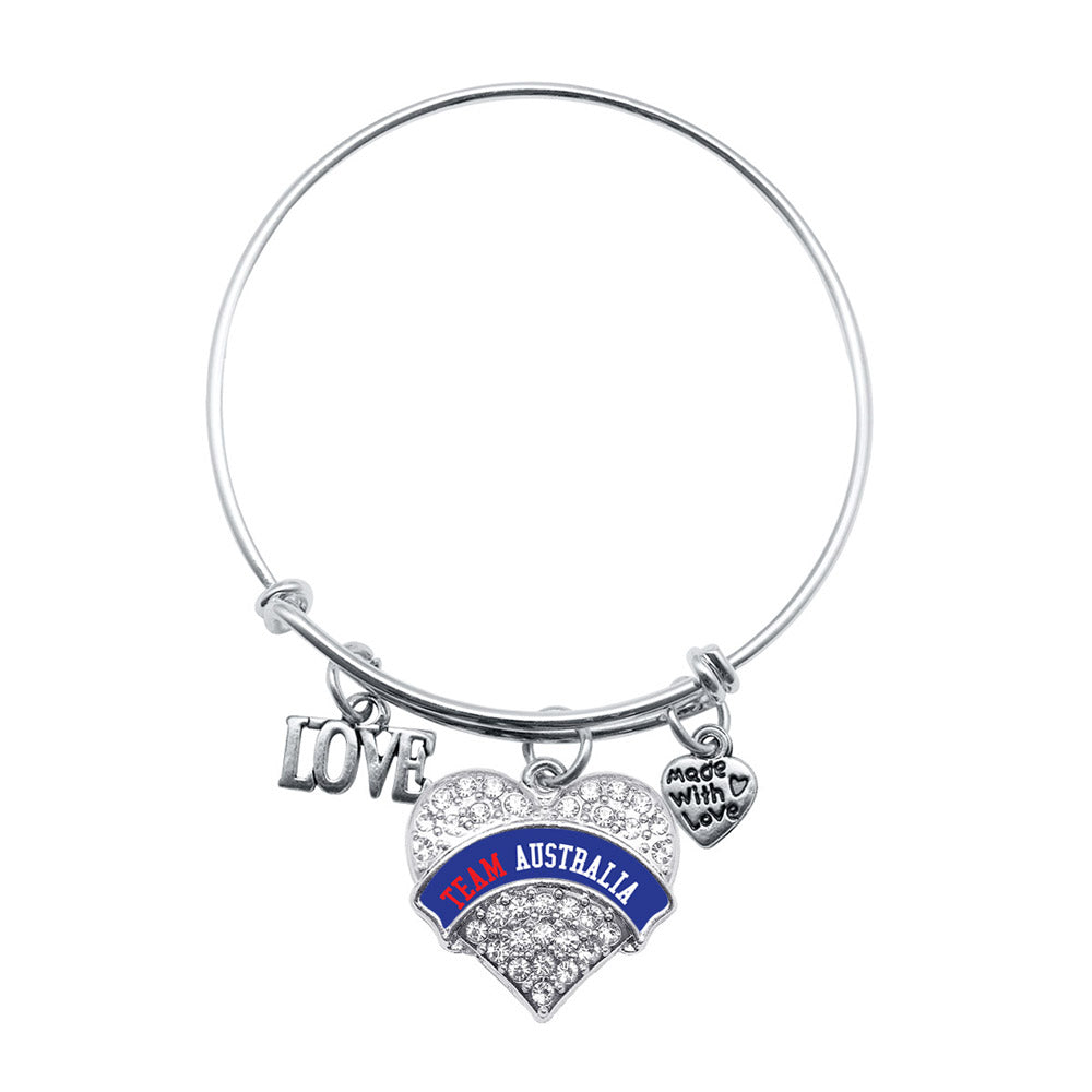 Silver Love Team Australia Pave Heart Charm Wire Bangle Bracelet