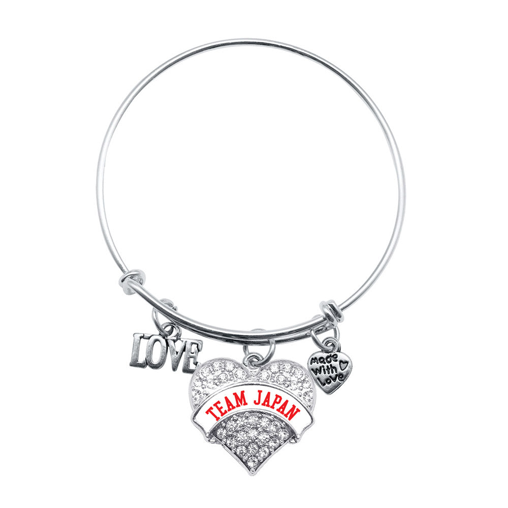 Silver Love Team Japan Pave Heart Charm Wire Bangle Bracelet