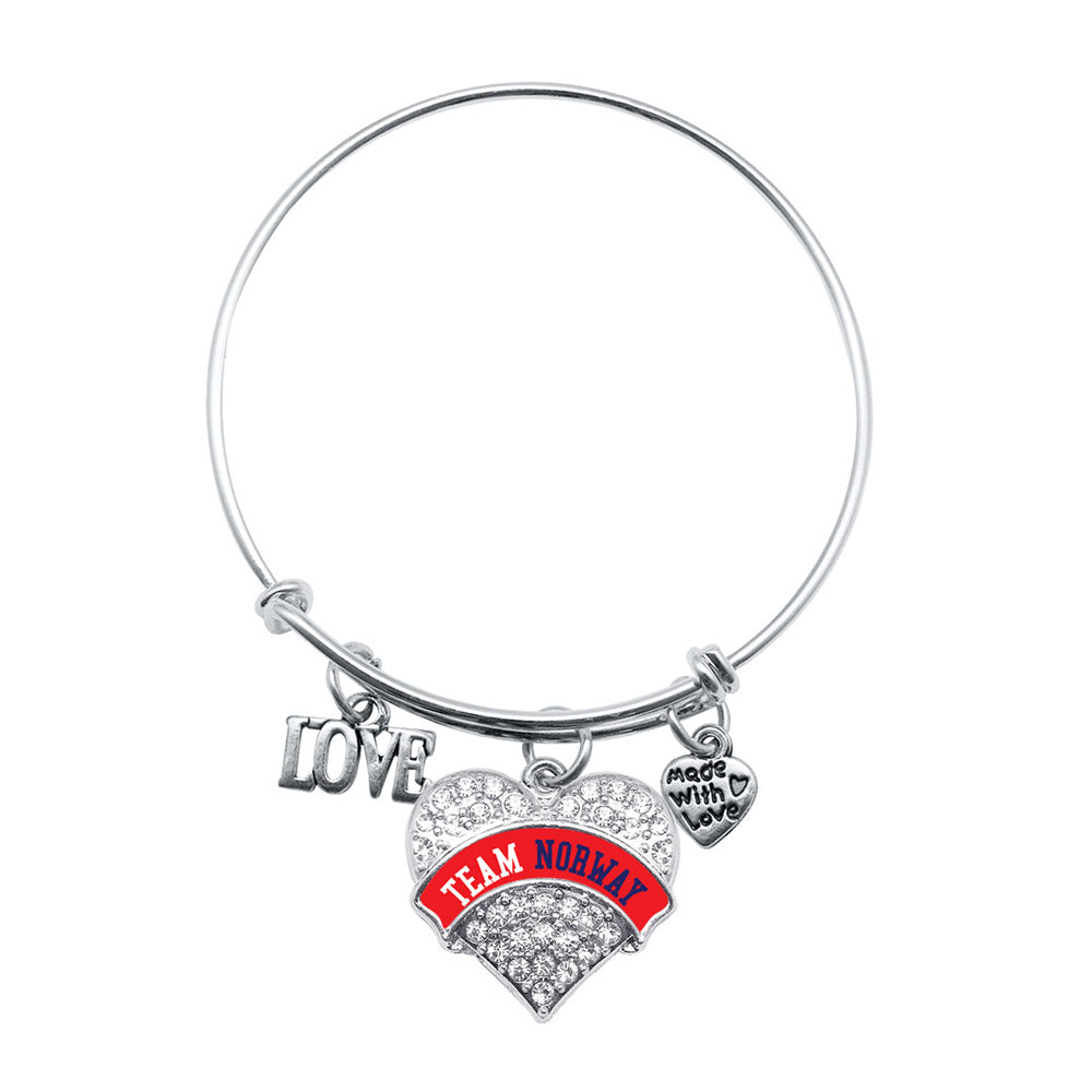 Silver Love Team Norway Pave Heart Charm Wire Bangle Bracelet