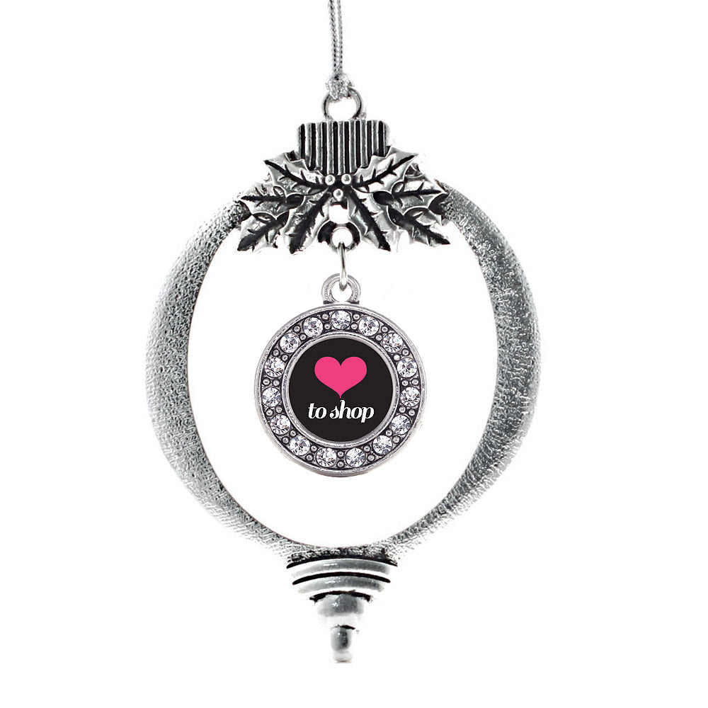 Our sparkling holiday ornament, equipped with a stylish silver rope and the Love to Shop circle charm, is crafted from white metal with a silver plated finish and accented with cubic zirconia stones.