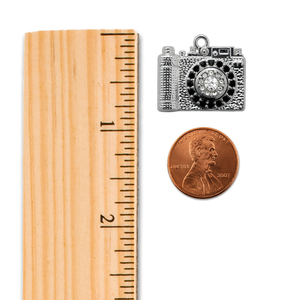 Our sparkling wire bangle bracelet, equipped with the Love Vintage Camera charm, is crafted from white metal with a silver plated finish.