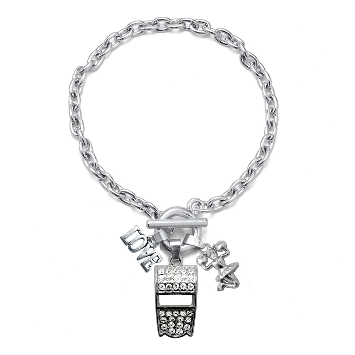 Silver Love Whistle Charm Toggle Bracelet