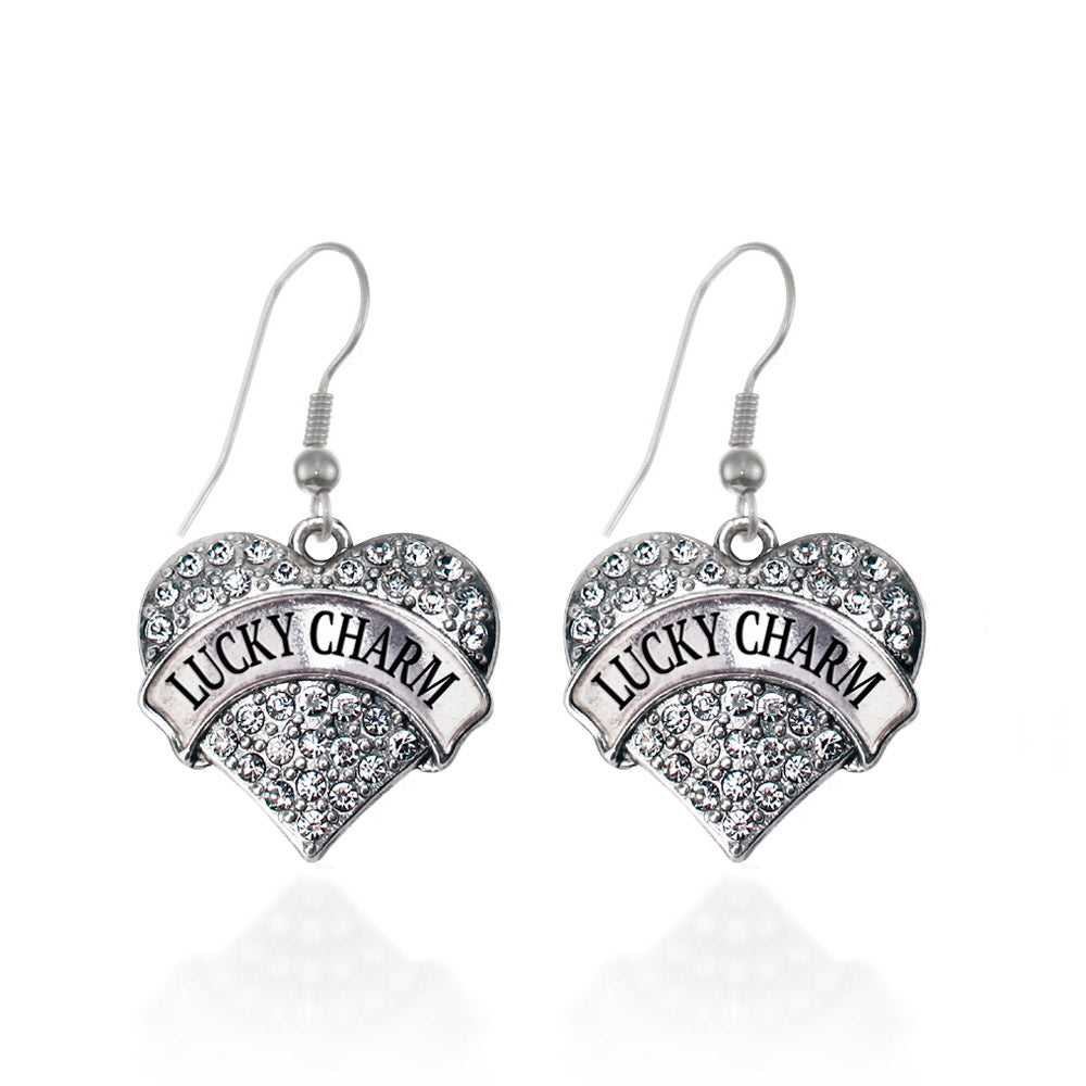 Silver Lucky Charm Pave Heart Charm Dangle Earrings