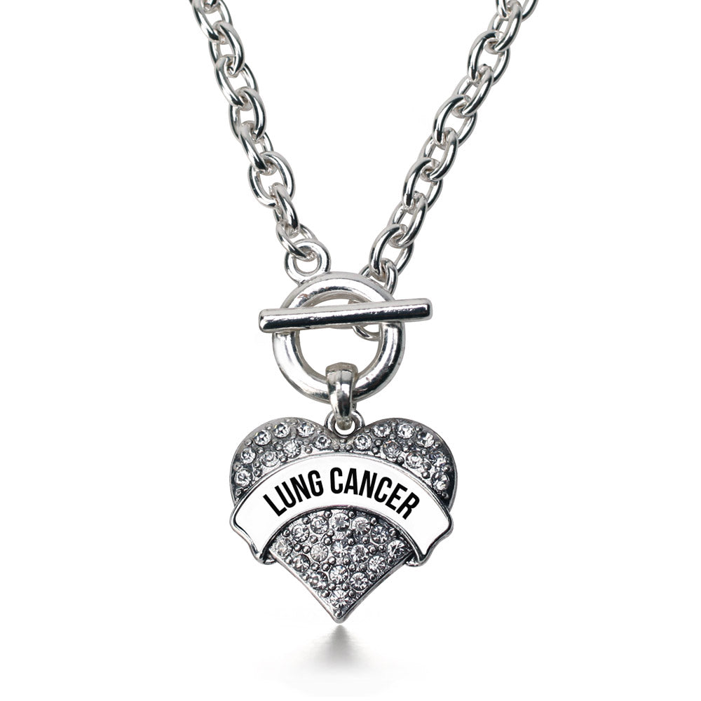 Silver Lung Cancer Awareness Pave Heart Charm Toggle Necklace