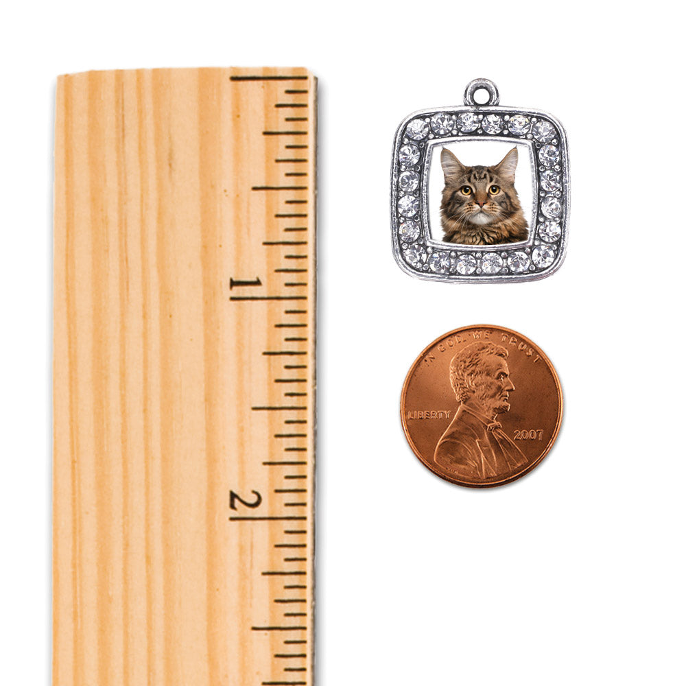 Our sparkling snowman ornament, equipped with a stylish silver rope and the Maine Coon Cat square charm, is crafted from white metal with a silver plated finish and accented with cubic zirconia stones.
