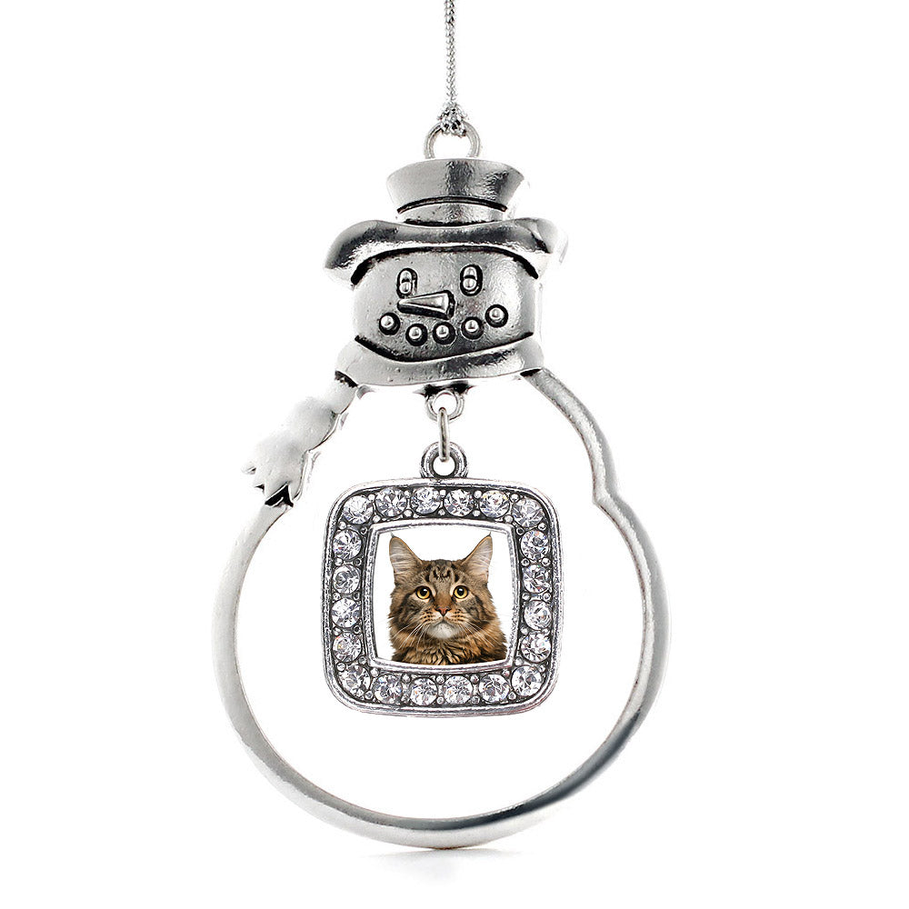 Silver Maine Coon Cat Square Charm Snowman Ornament