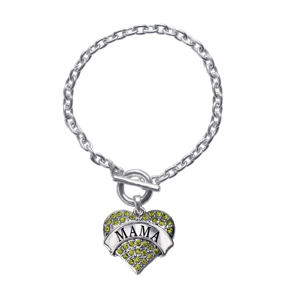 Silver Mama Green Pave Heart Charm Toggle Bracelet