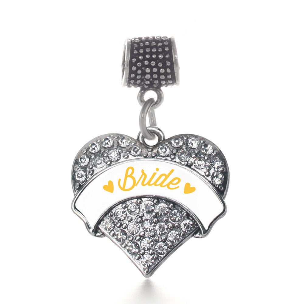 Our sparkling memory charm, equipped with a stylish charm attachment ring and the Marigold Bride pave heart charm, is crafted from white metal with a silver plated finish and accented with cubic zirconia stones.