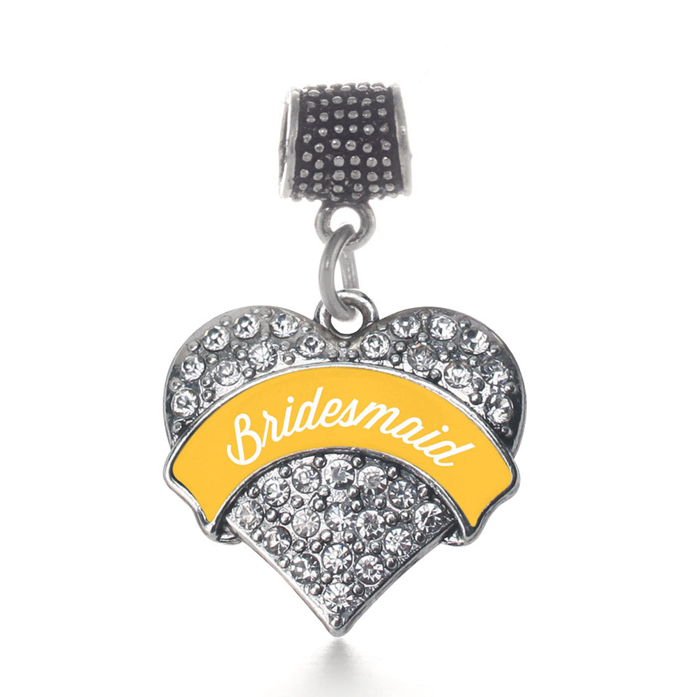 Our sparkling memory charm, equipped with a stylish charm attachment ring and the Marigold Bridesmaid pave heart charm, is crafted from white metal with a silver plated finish and accented with cubic zirconia stones.