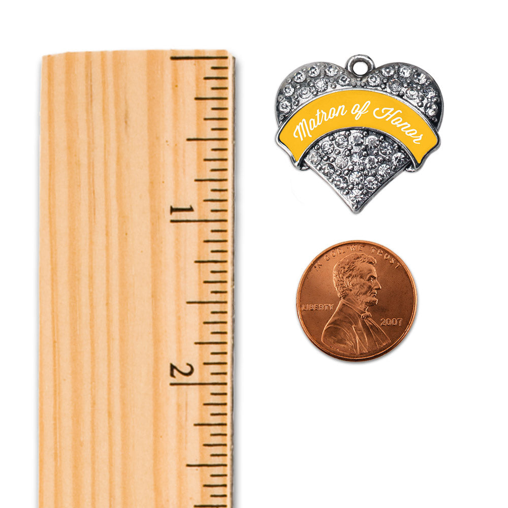 Our sparkling memory charm, equipped with a stylish charm attachment ring and the Marigold Matron pave heart charm, is crafted from white metal with a silver plated finish and accented with cubic zirconia stones.
