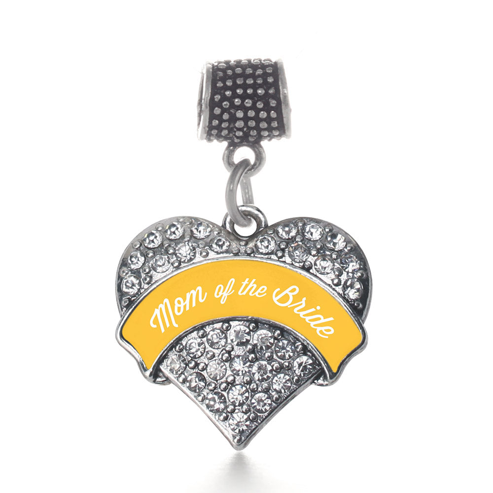 Our sparkling memory charm, equipped with a stylish charm attachment ring and the Marigold Mom of the Bride pave heart charm, is crafted from white metal with a silver plated finish and accented with cubic zirconia stones.