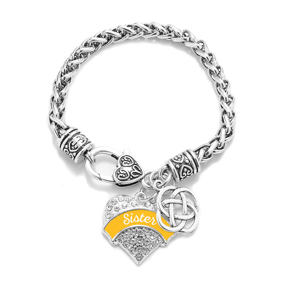 Silver Marigold Sister Celtic Knot Pave Heart Charm Braided Bracelet
