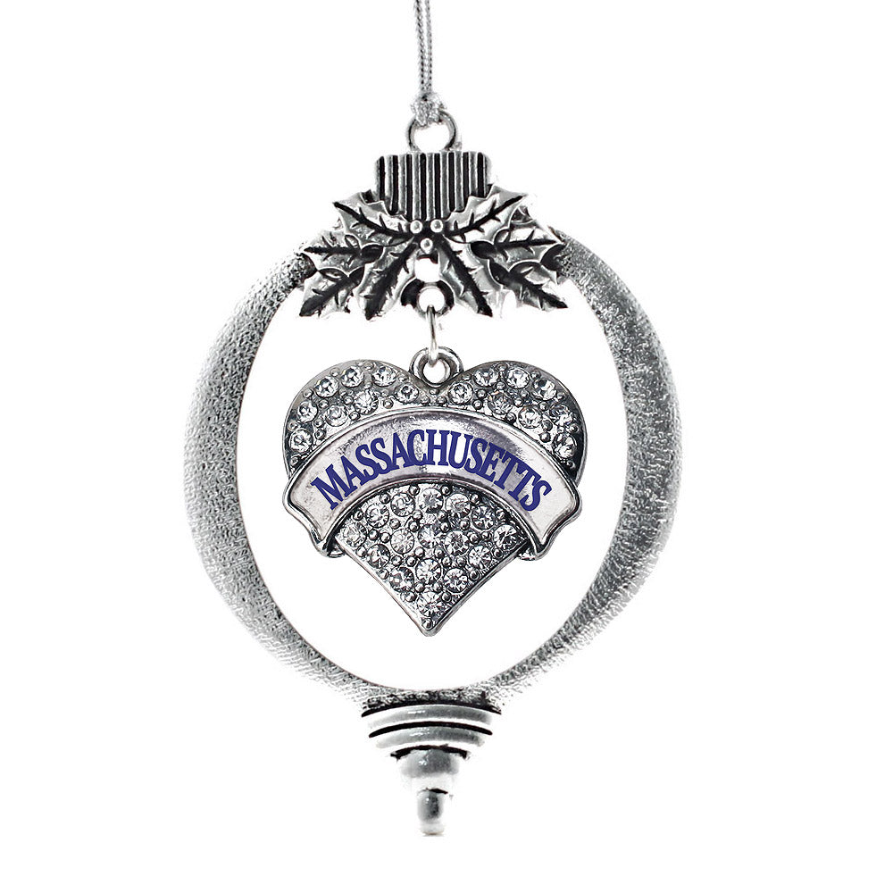 Silver Massachusetts Pave Heart Charm Holiday Ornament