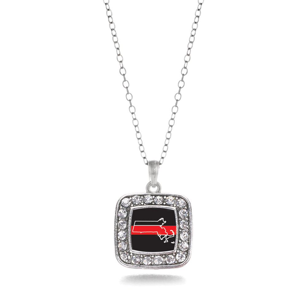 Silver Massachusetts Thin Red Line Square Charm Classic Necklace
