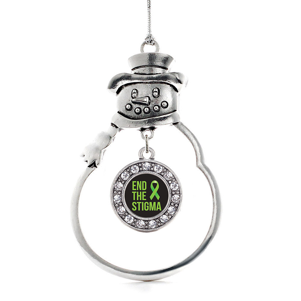 Silver Mental Health Awareness Circle Charm Snowman Ornament