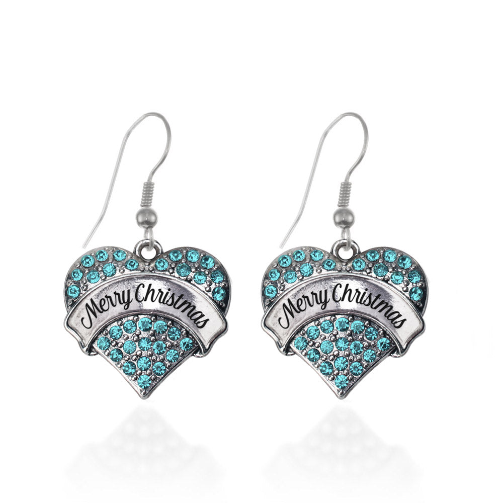 Silver Merry Christmas Aqua Aqua Pave Heart Charm Dangle Earrings