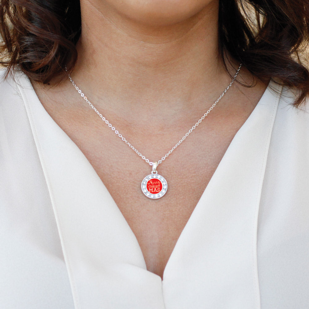 Silver Merry Christmas Circle Charm Classic Necklace