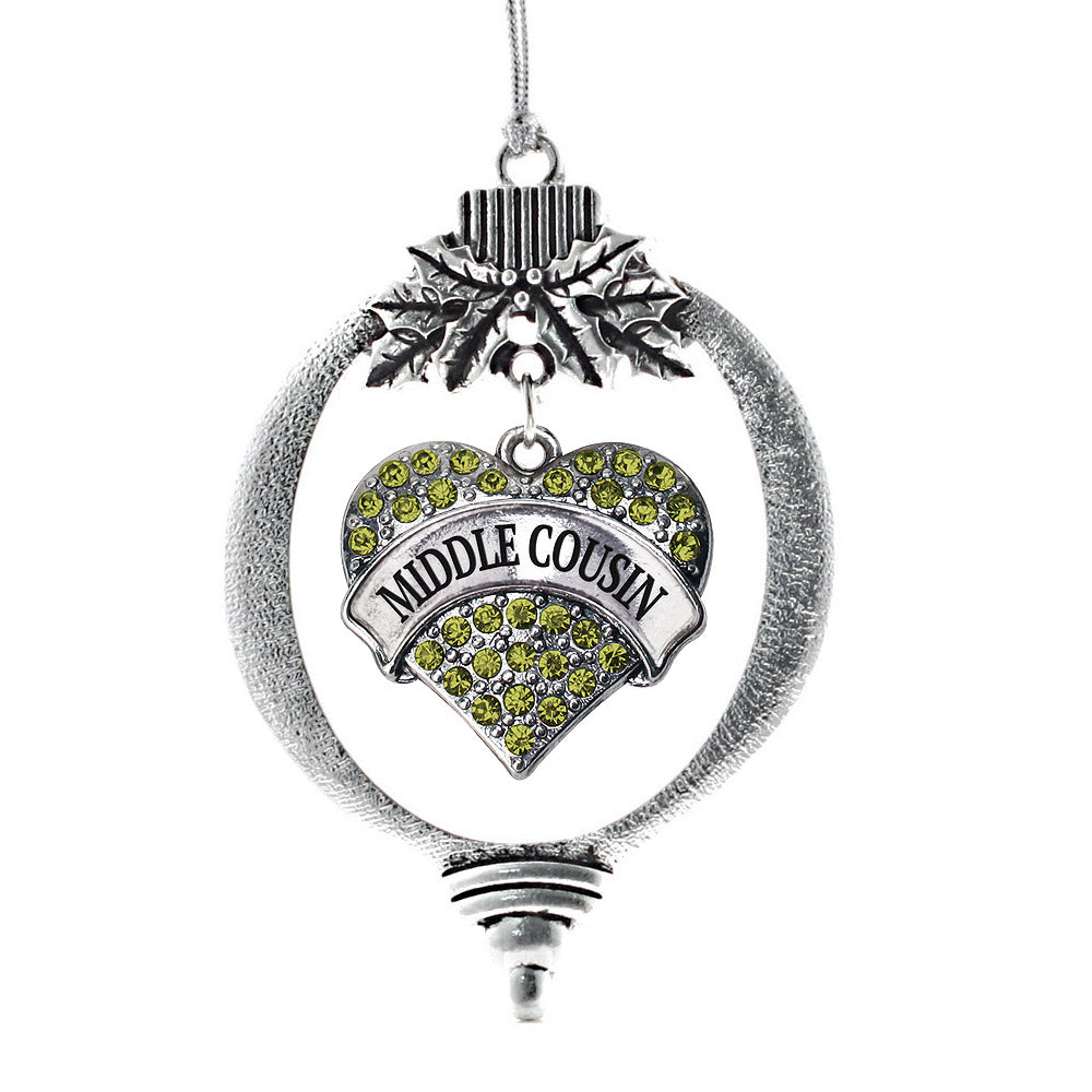 Silver Middle Cousin Green Green Pave Heart Charm Holiday Ornament