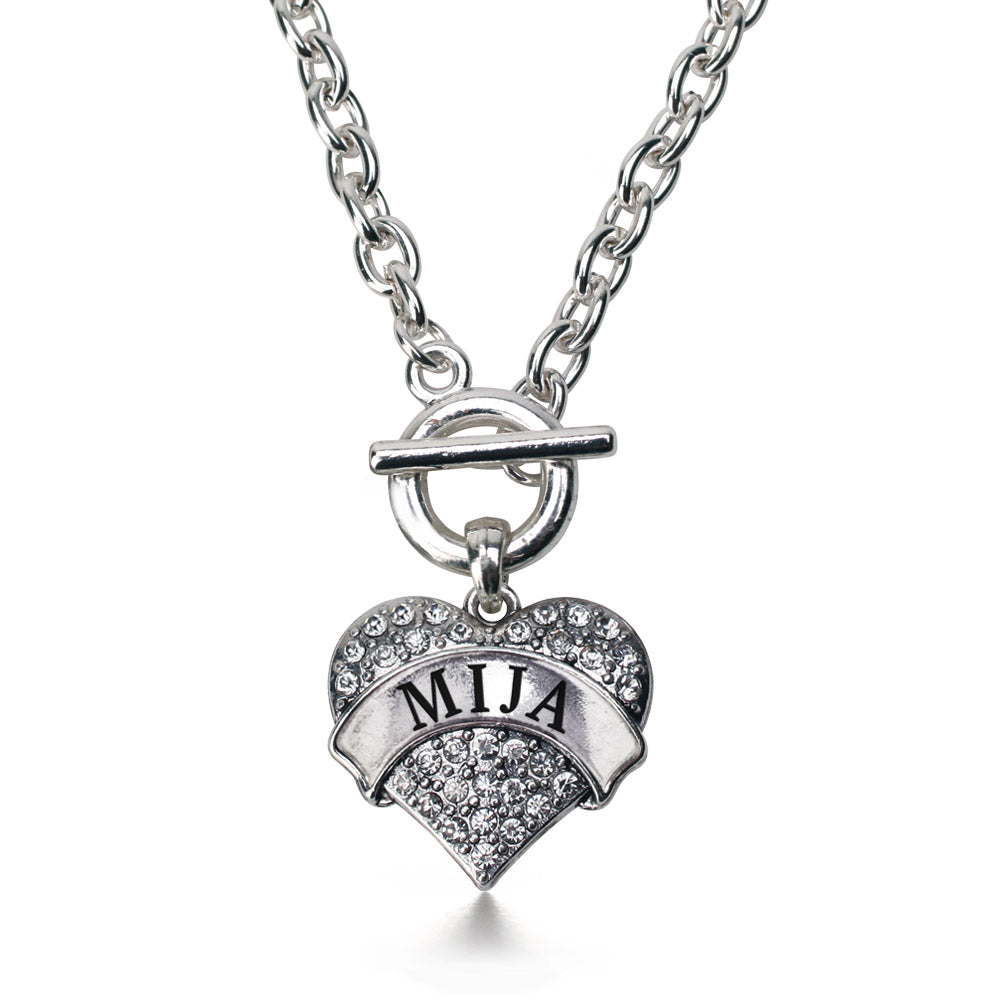 Our sparkling toggle necklace, equipped with a stylish toggle clasp and the Mija pave heart charm, is crafted from white metal with a silver plated finish and accented with cubic zirconia stones.