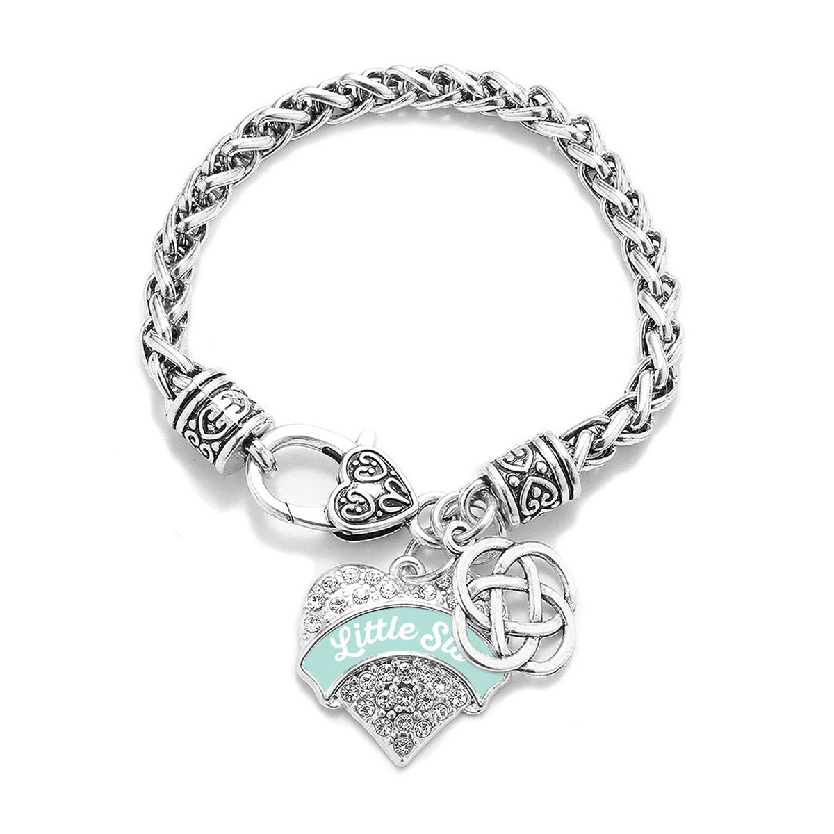 Silver Mint Little Sis Celtic Knot Pave Heart Charm Braided Bracelet