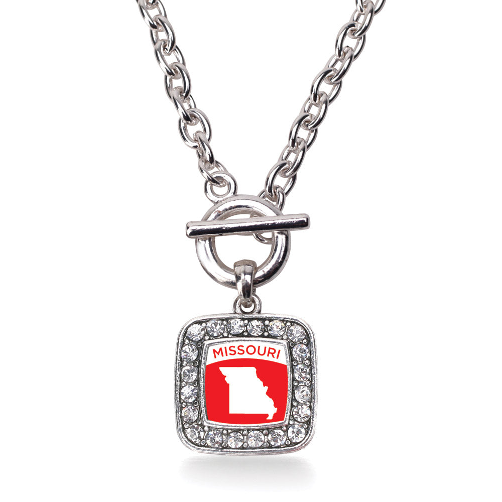 Silver Missouri Outline Square Charm Toggle Necklace