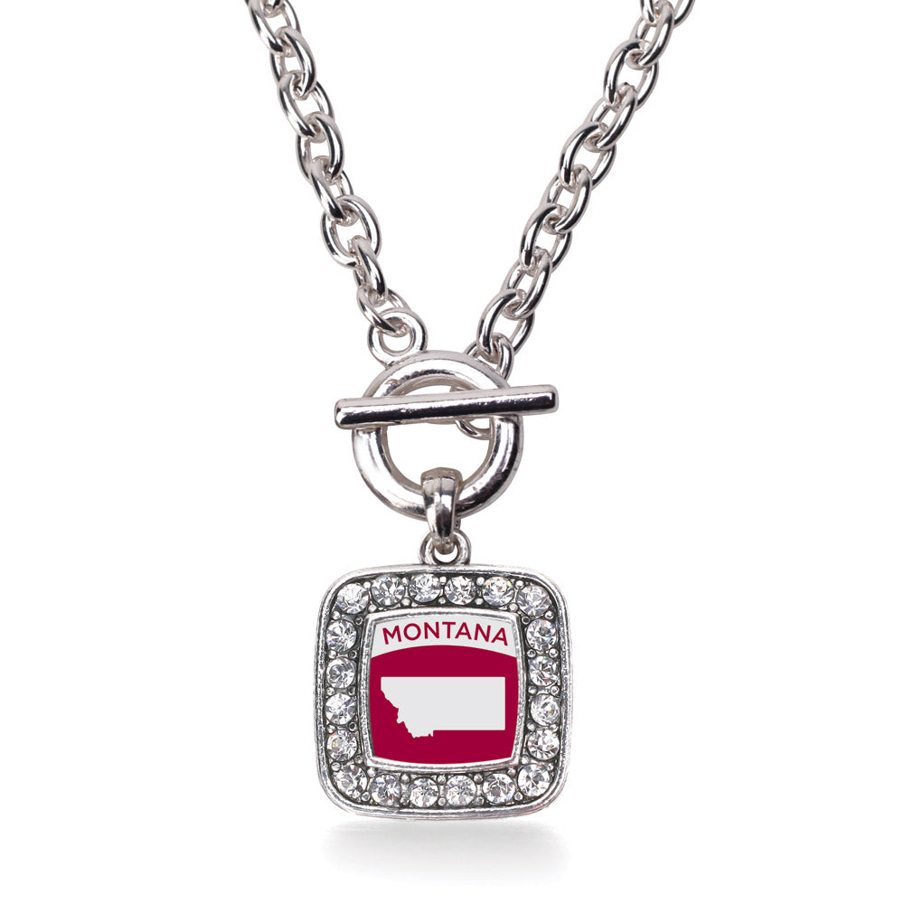 Our sparkling toggle necklace, equipped with a stylish toggle clasp and the Montana Outline square charm, is crafted from white metal with a silver plated finish and accented with cubic zirconia stones.
