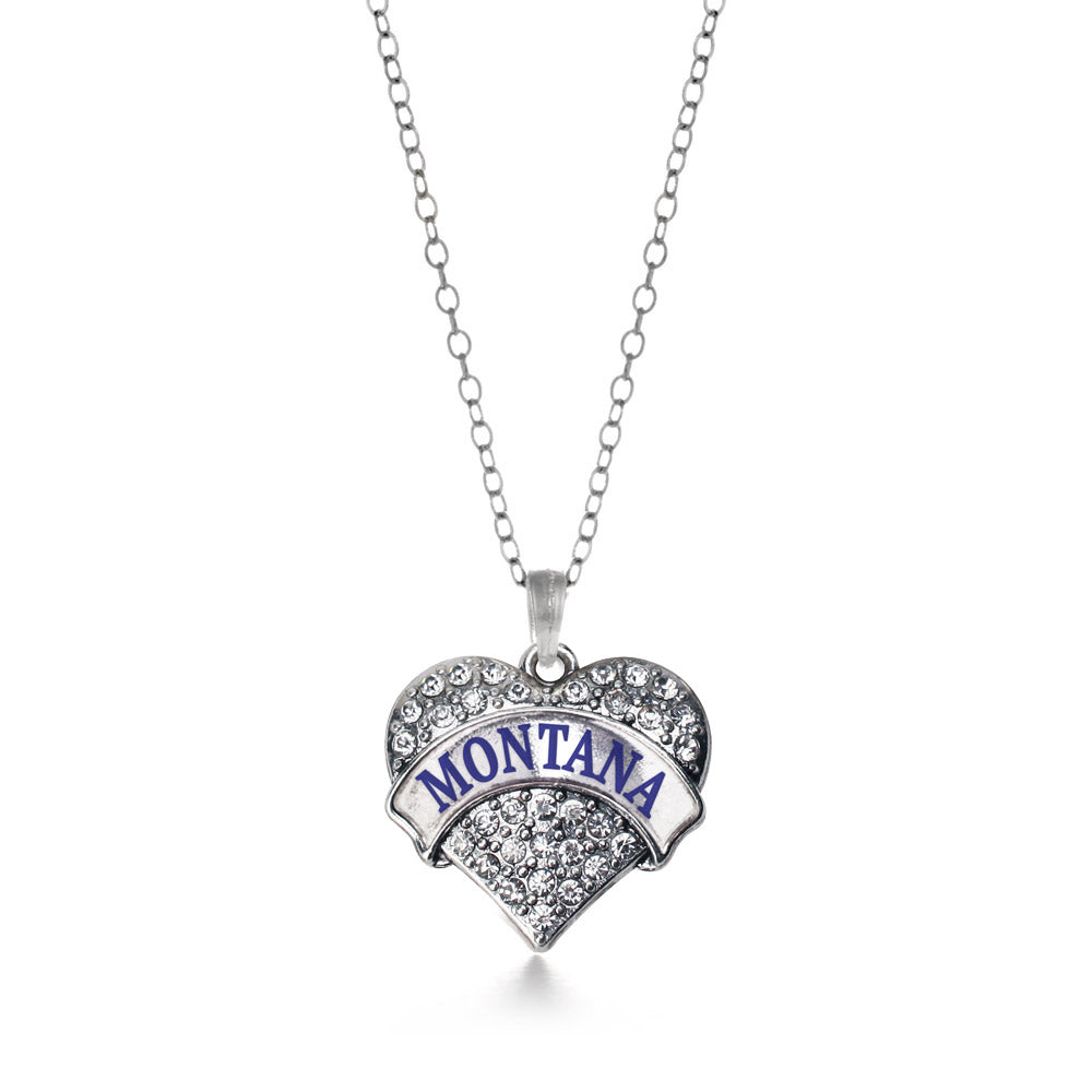 Our sparkling classic necklace, equipped with a stylish lobster claw clasp and the Montana pave heart charm, is crafted from white metal with a silver plated finish and accented with cubic zirconia stones.