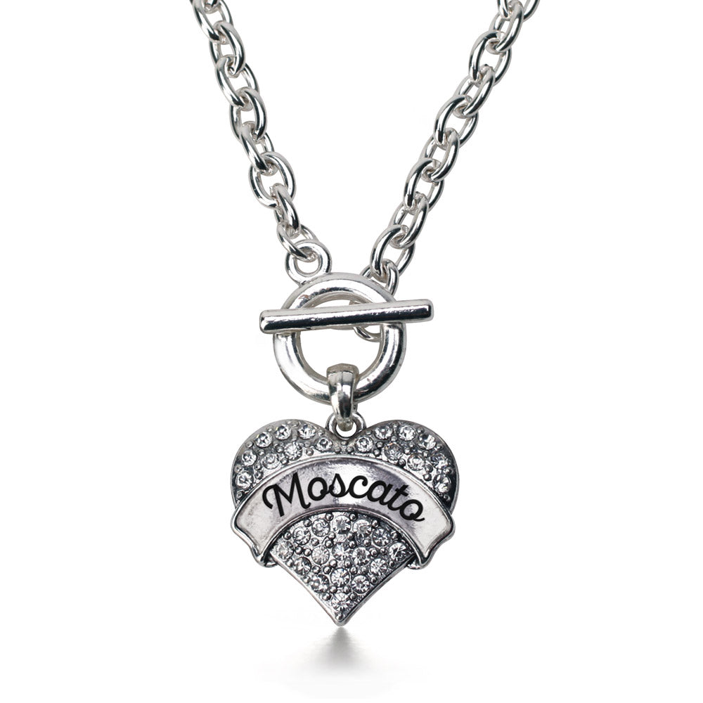 Our sparkling toggle necklace, equipped with a stylish toggle clasp and the Moscato pave heart charm, is crafted from white metal with a silver plated finish and accented with cubic zirconia stones.