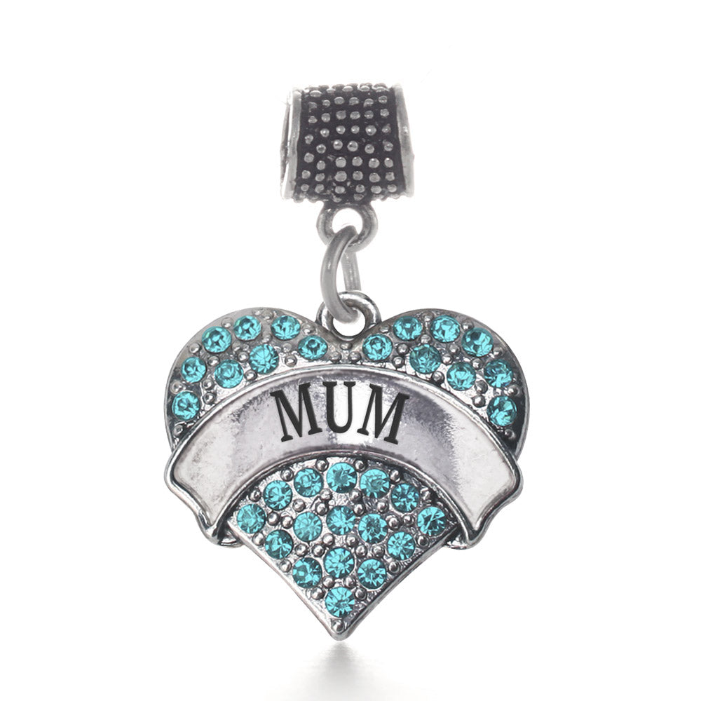 Silver Mum Aqua Aqua Pave Heart Memory Charm