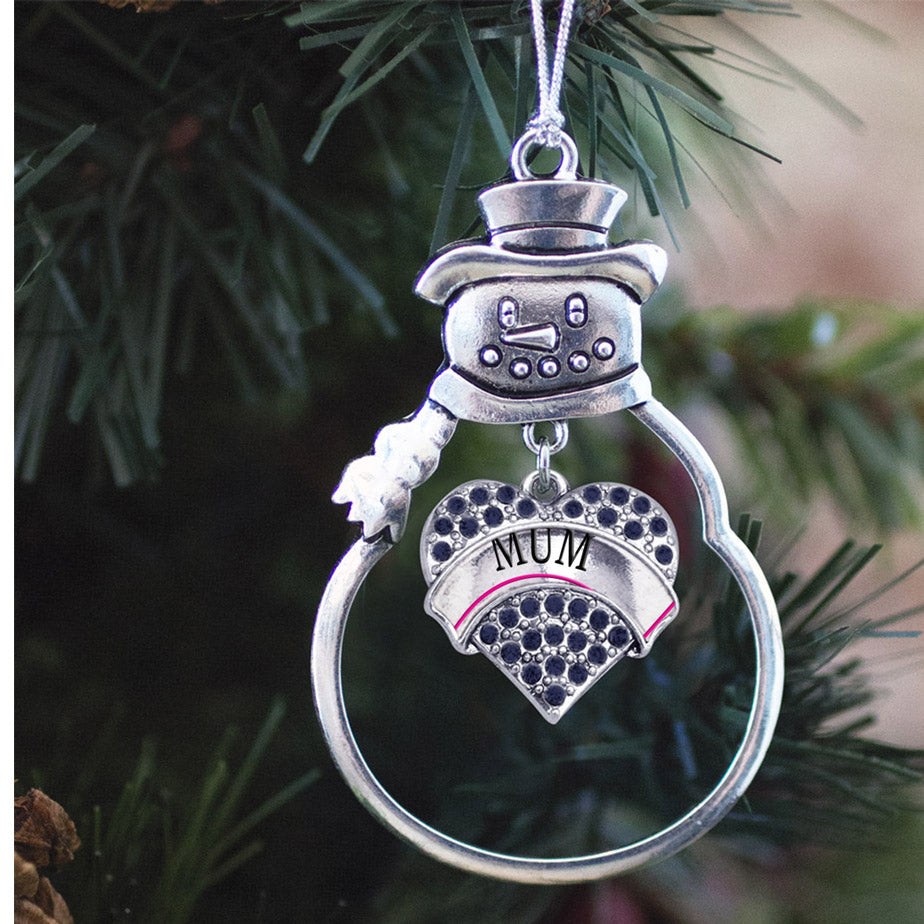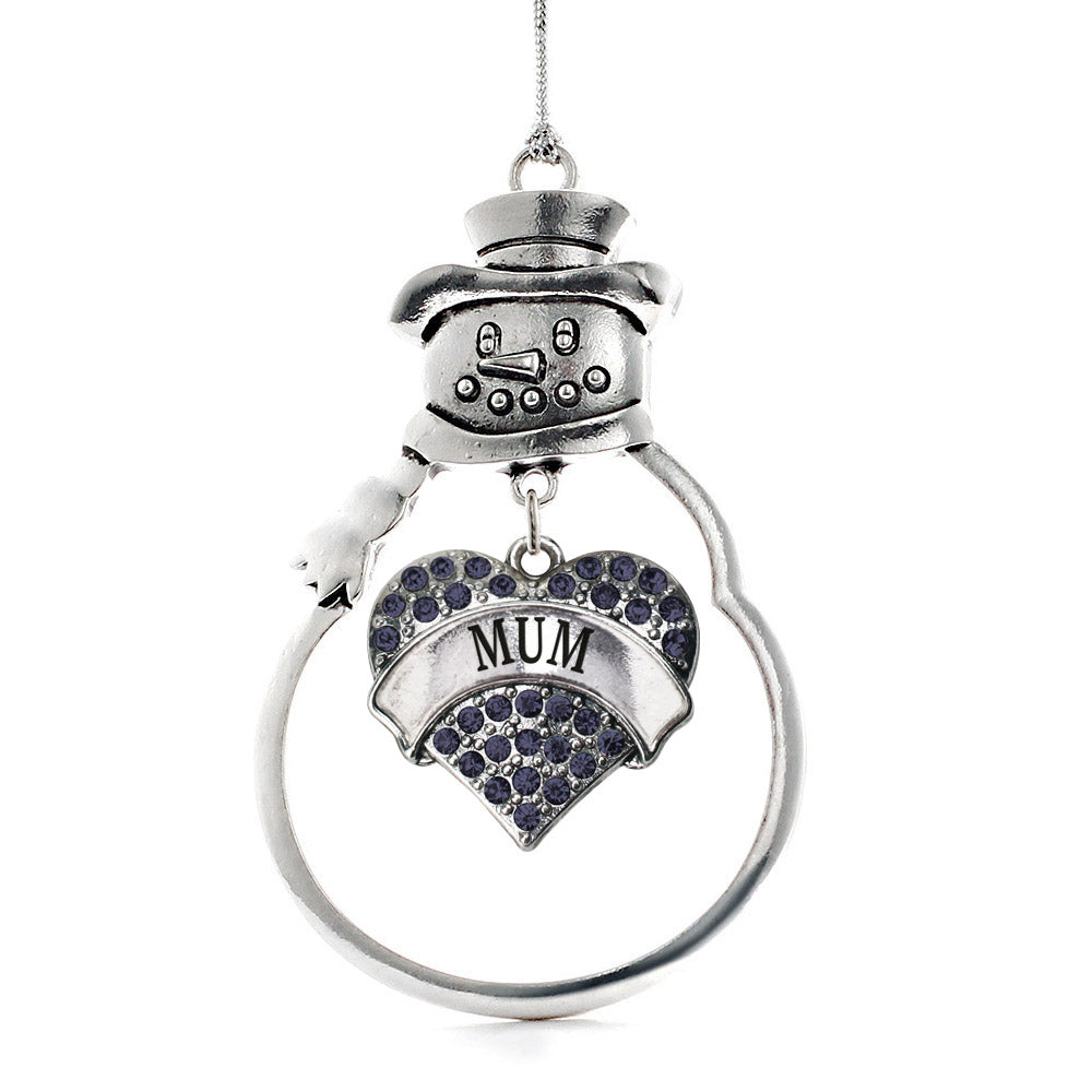 Silver Mum Navy Blue Pave Heart Charm Snowman Ornament