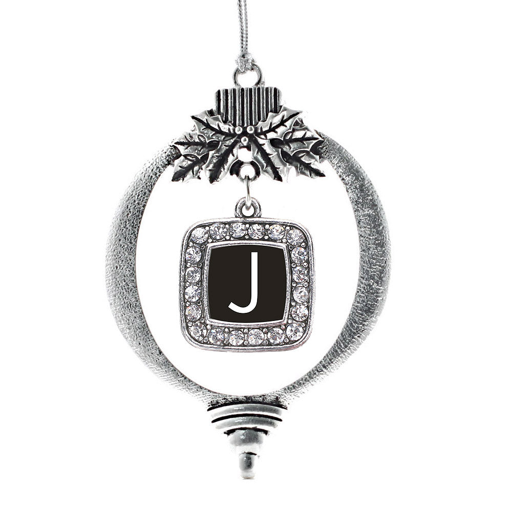 Our sparkling holiday ornament, equipped with a stylish silver rope and the My Initials - Letter J square charm, is crafted from white metal with a silver plated finish and accented with cubic zirconia stones.