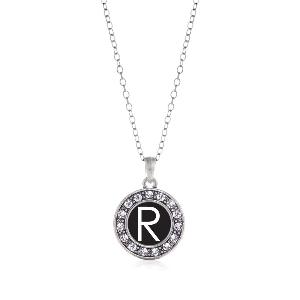 Silver My Initials - Letter R Circle Charm Classic Necklace