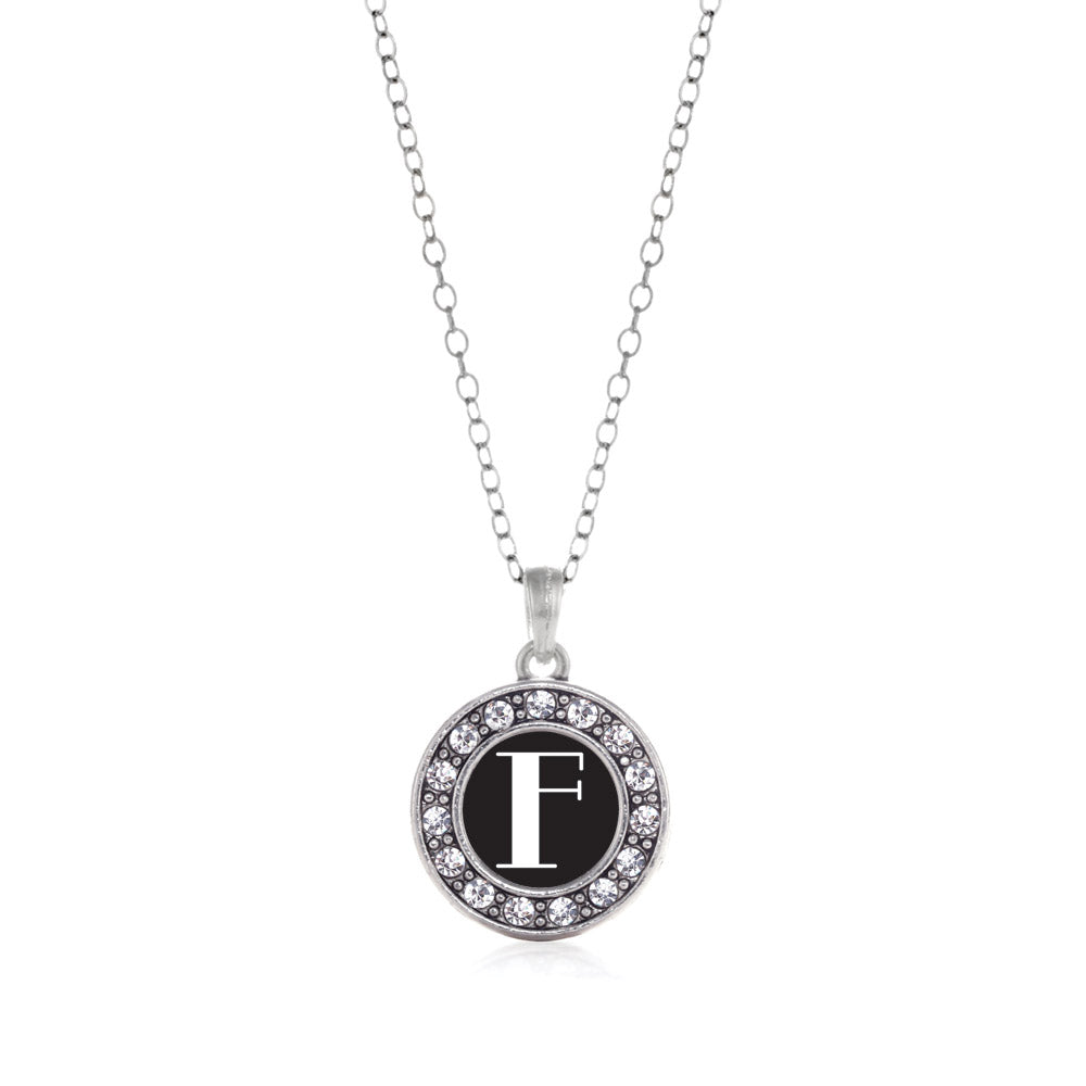 Silver My Vintage Initials - Letter F Circle Charm Classic Necklace