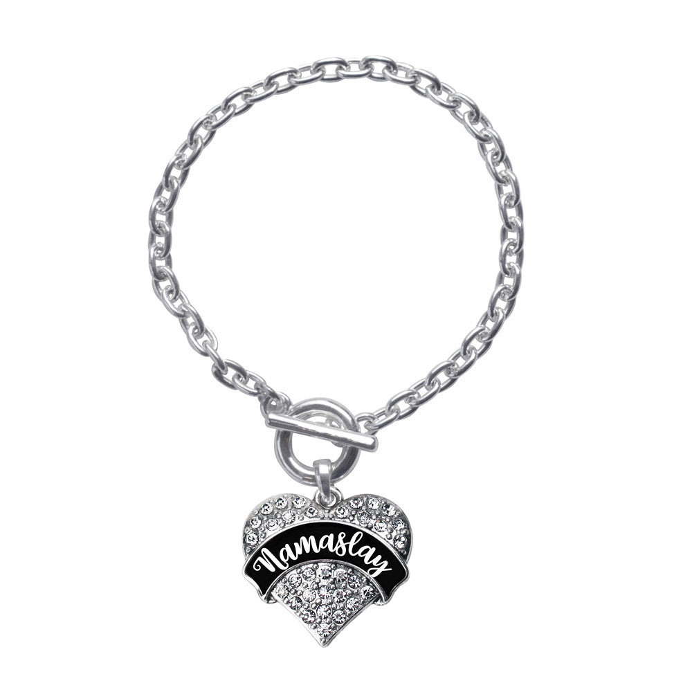 Silver Namaslay Pave Heart Charm Toggle Bracelet