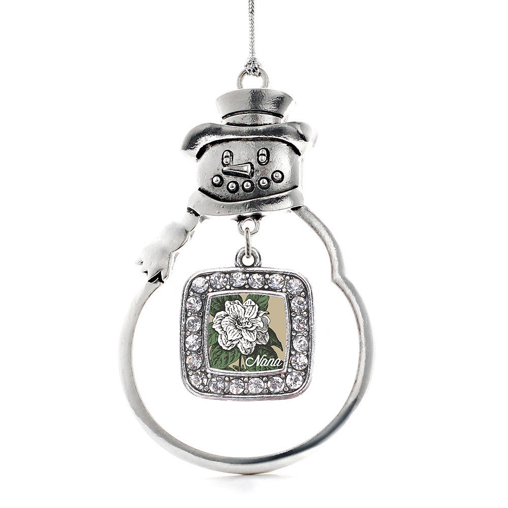 Silver Nana Gardenia Flower Square Charm Snowman Ornament