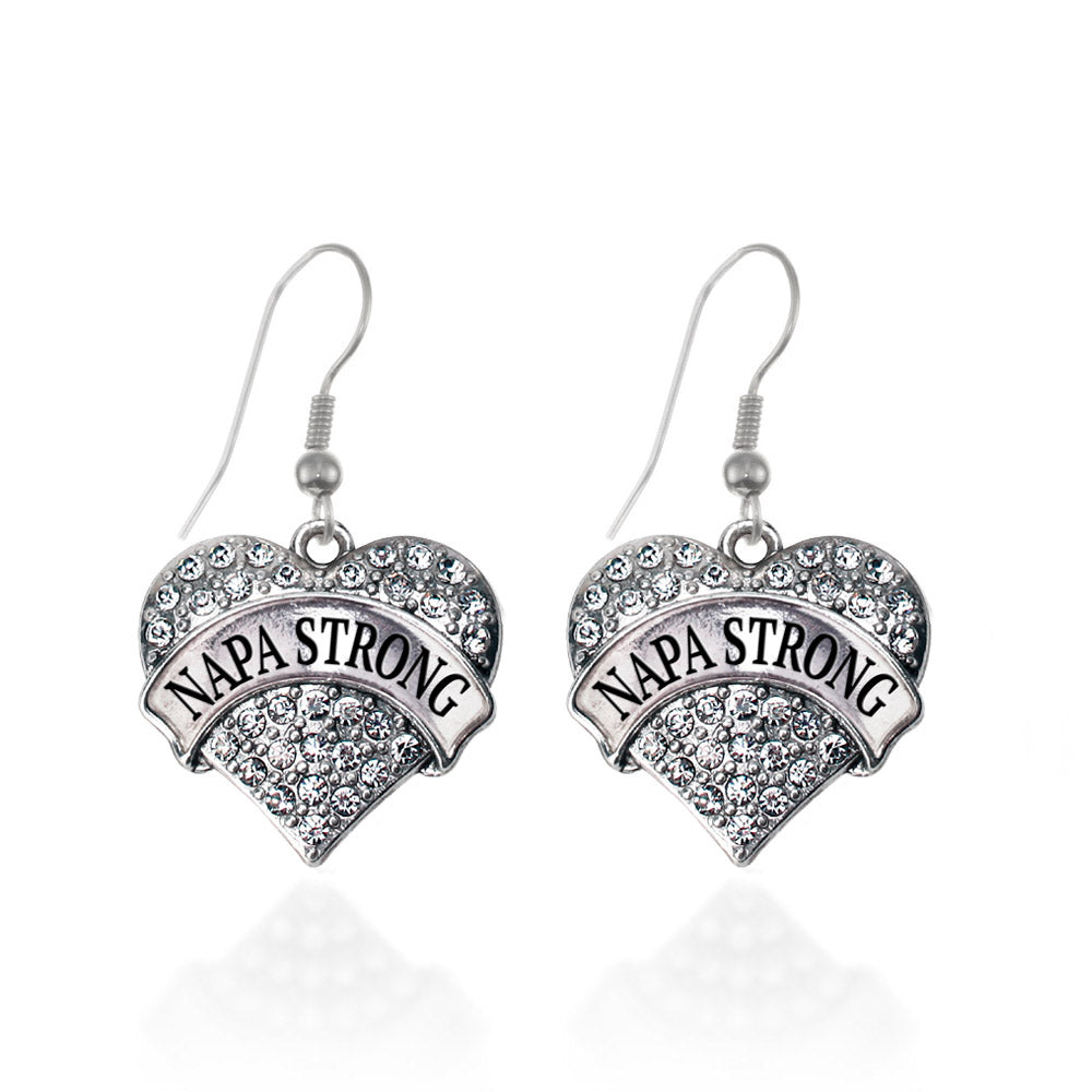 Our sparkling dangle earrings, equipped with a stylish french hook backing and the Napa Strong pave heart charm, is crafted from white metal with a silver plated finish and accented with cubic zirconia stones.