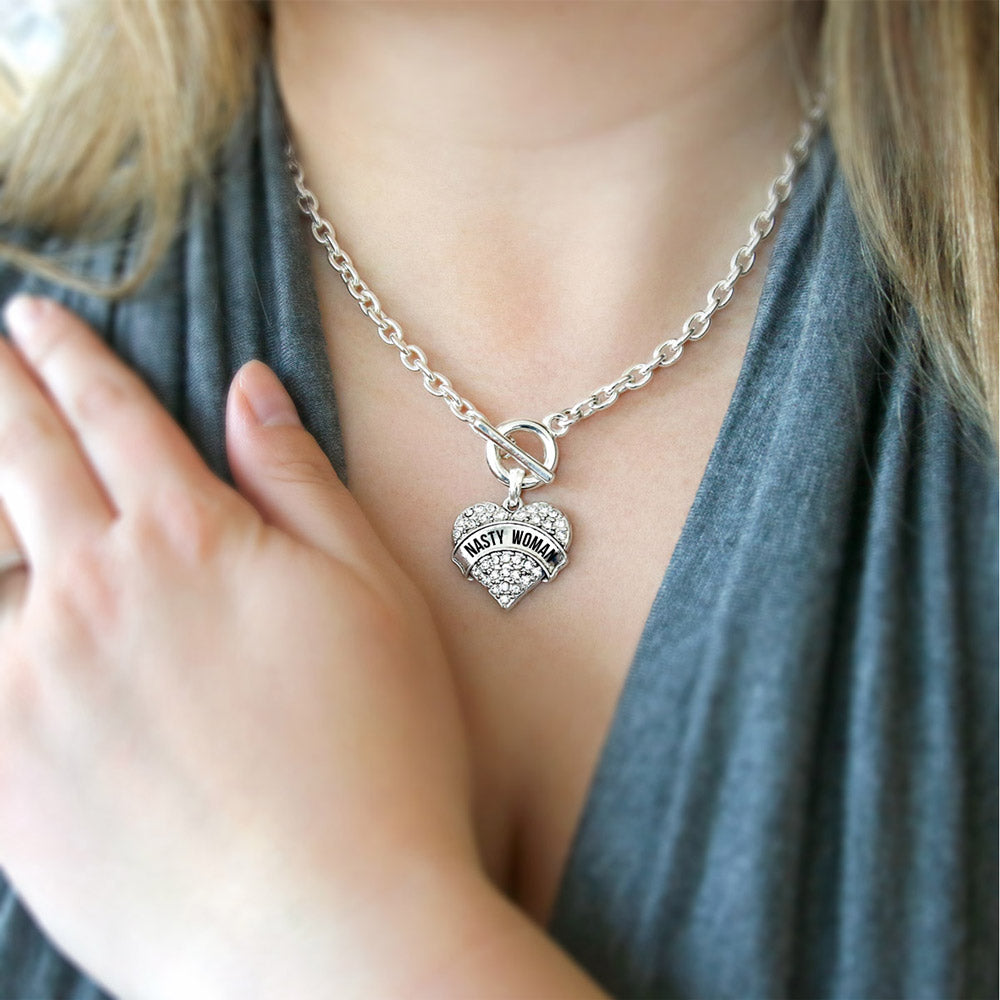 Silver Nasty Woman Pave Heart Charm Toggle Necklace