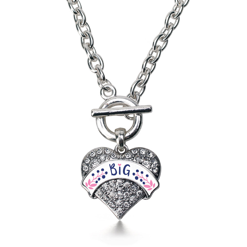 Our sparkling toggle necklace, equipped with a stylish toggle clasp and the Navy Blue and Rose Big pave heart charm, is crafted from white metal with a silver plated finish and accented with cubic zirconia stones.