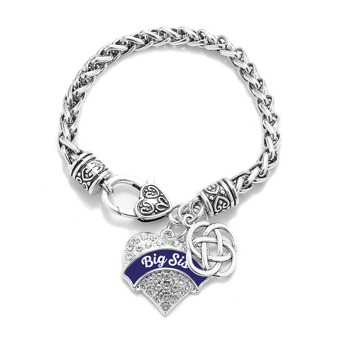 Our sparkling braided bracelet, equipped with a stylish lobster claw clasp and the Navy Blue Big Sis Celtic Knot pave heart charm, is crafted from white metal with a silver plated finish and accented with cubic zirconia stones.